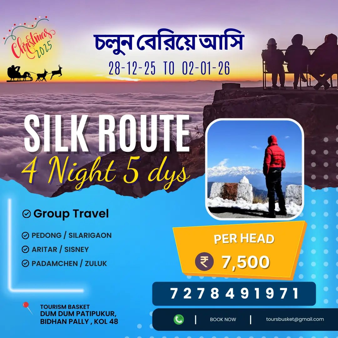 Celebrate Christmas 2025 on the Historic Silk Route! This 5-day winter expedition takes you through the snow-kissed Himalayas of Sikkim. Traverse the legendary zigzag roads of Zuluk, witness frozen landscapes at Kupup Lake, and ring in the New Year 2026 with breathtaking views. All-inclusive package with meals & stays. Book your magical Christmas escape now!